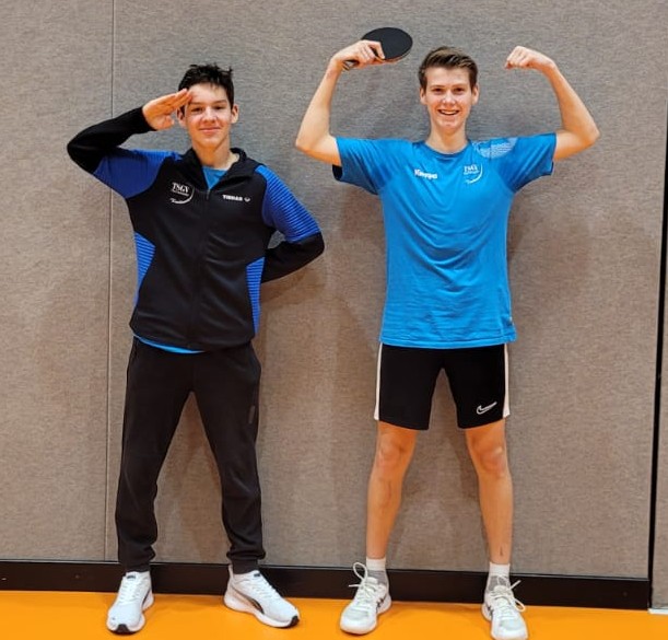 Kalle und sein zugeloster Partner trafen gleich auf den späteren Zweitplatzierten und verloren mit 3:0 Sätzen, jedoch jeweils denkbar knapp in der Verlängerung. Mika und Julian gewannen ihr erstes Doppel nach anfänglichen Startschwierigkeiten. Im Viertelfinale mussten sie sich leider knapp geschlagen geben. Johannes Laps und Louis Hetzel erreichten mit nur einer Niederlage einen sehr guten 3. Platz!