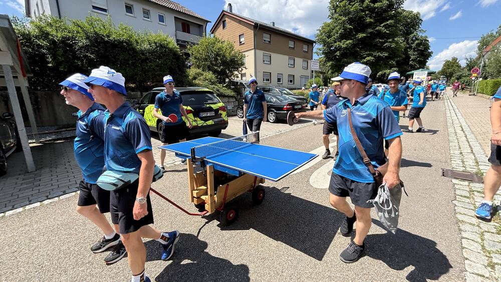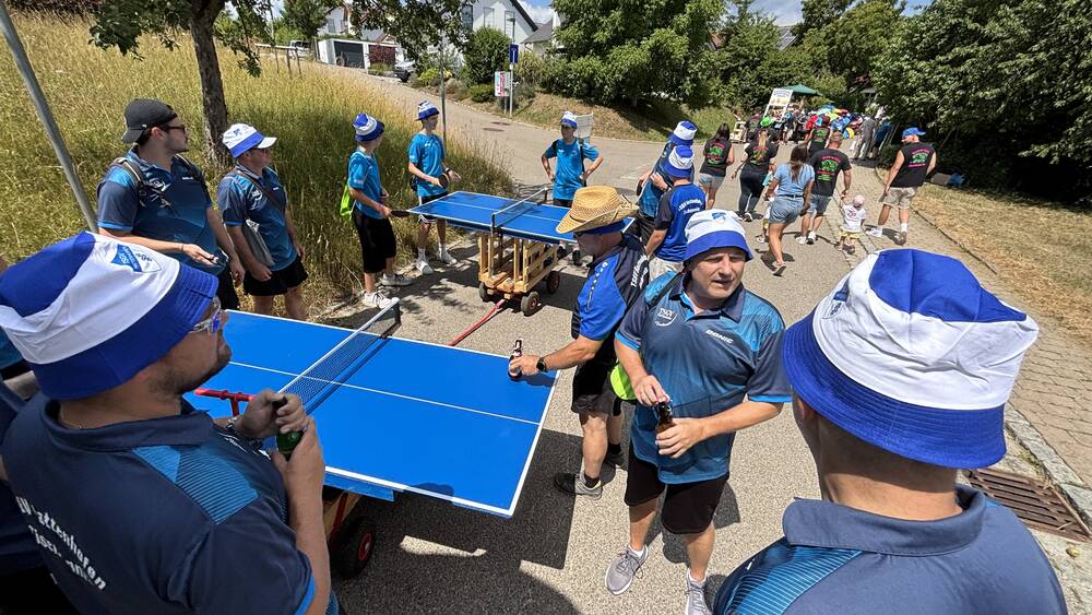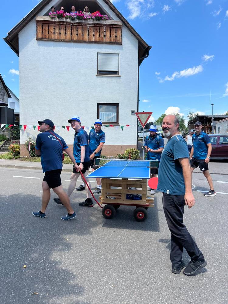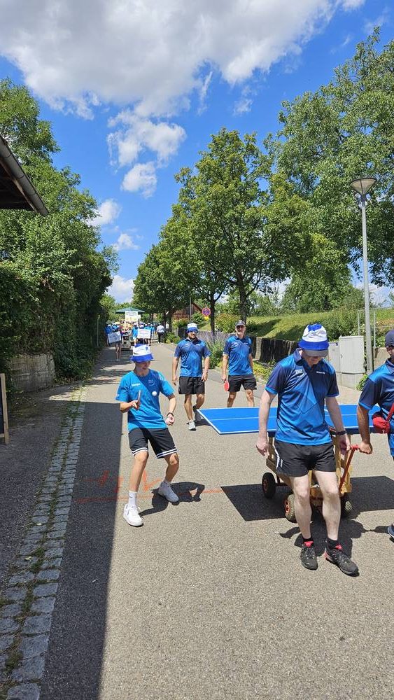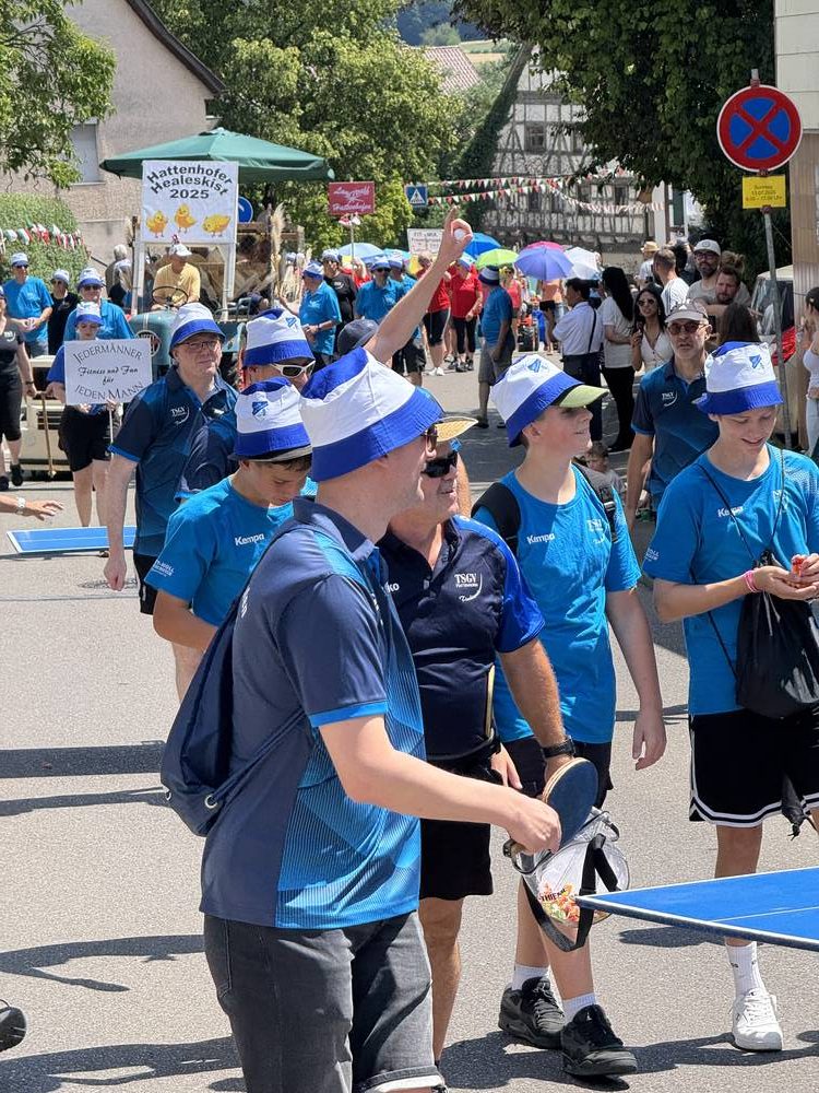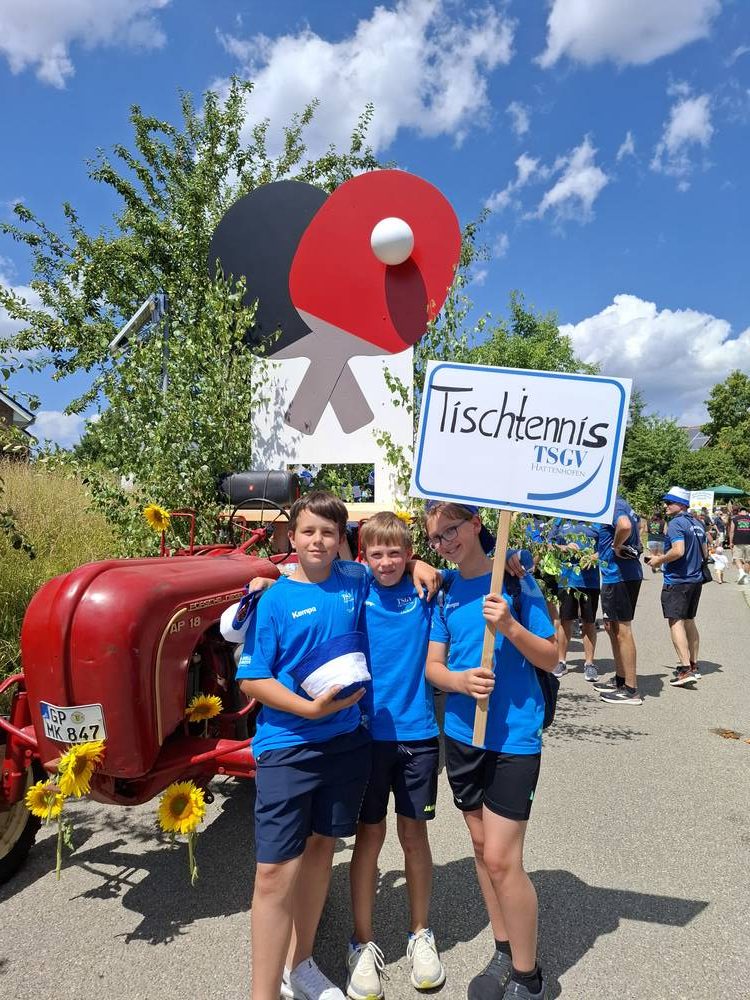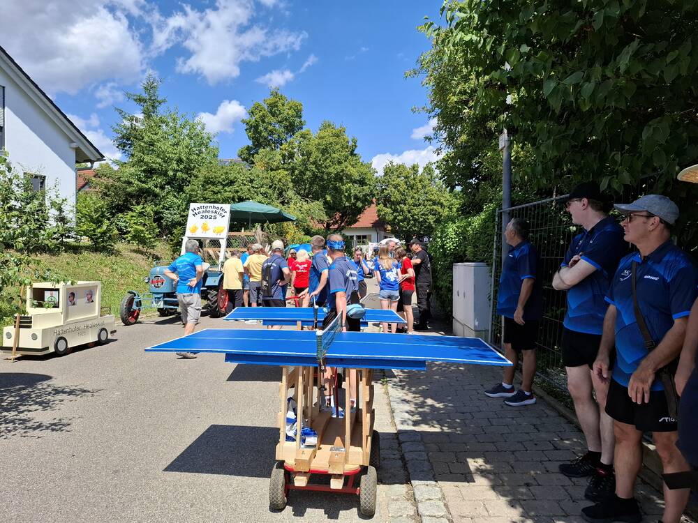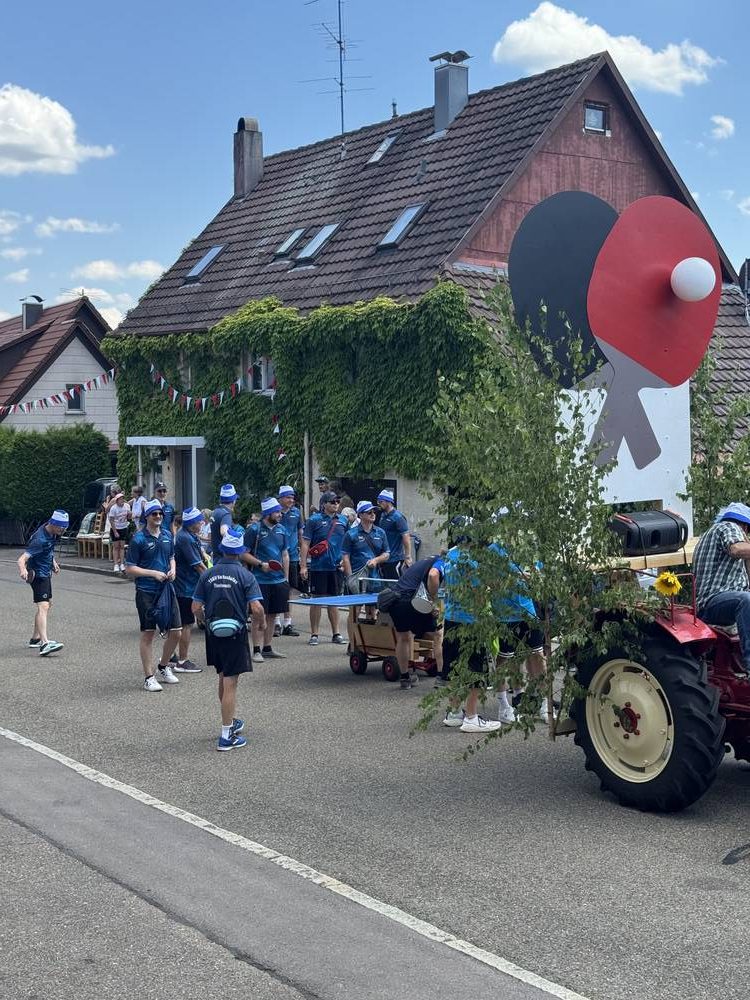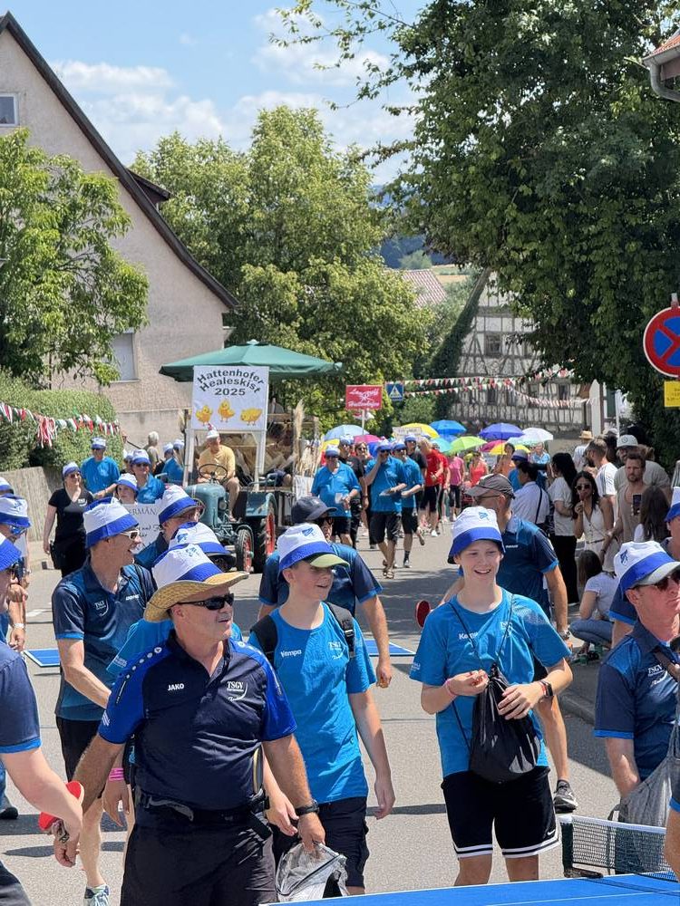 Am vergangenen Wochenende feierte unsere Gemeinde ein ganz besonderes Ereignis: 750 Jahre Hattenhofen! Selbstverständlich war auch die Tischtennisabteilung des TSGV mit großer Begeisterung beim Festumzug vertreten – und das mit einer kreativen und sportlichen Idee.