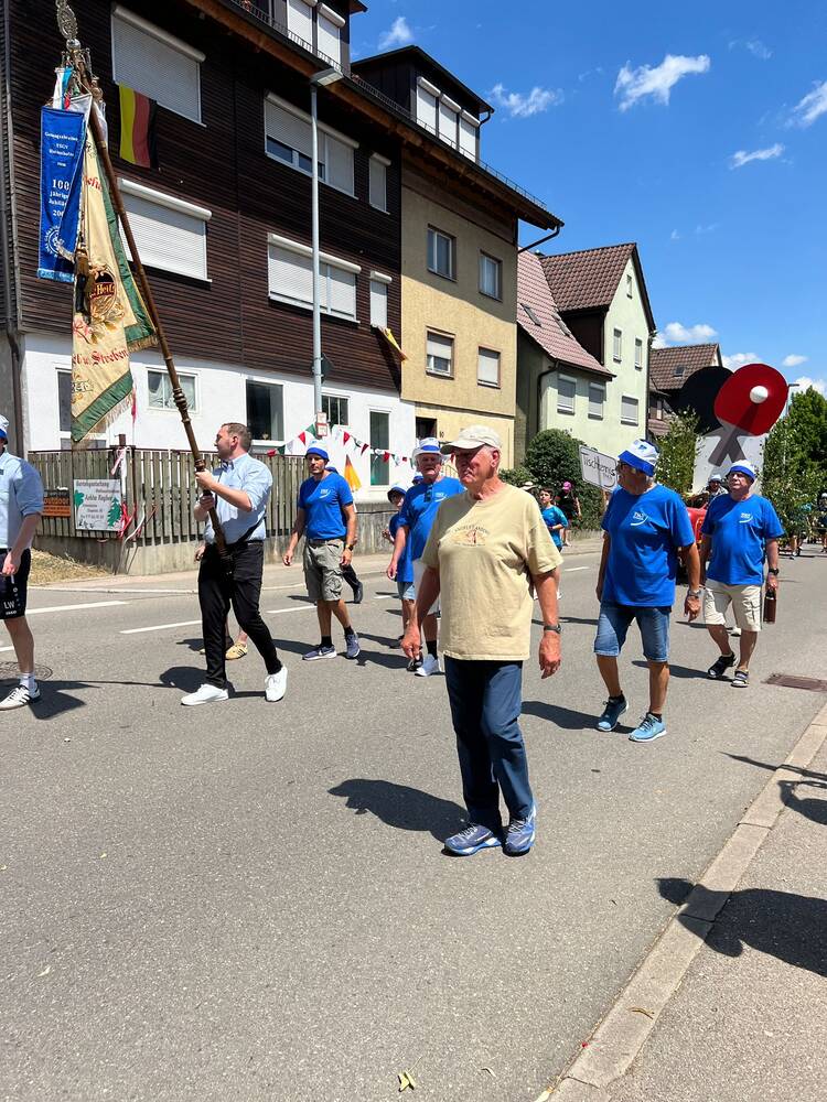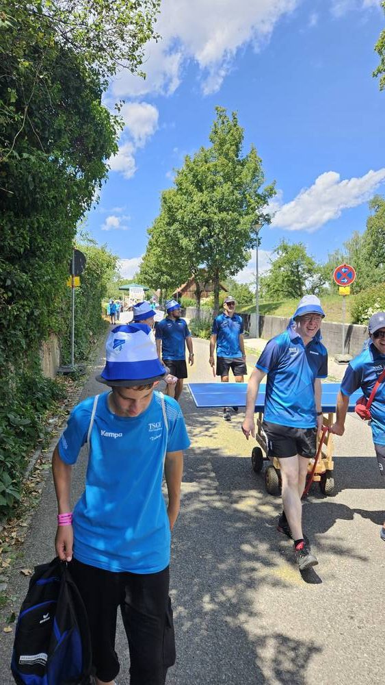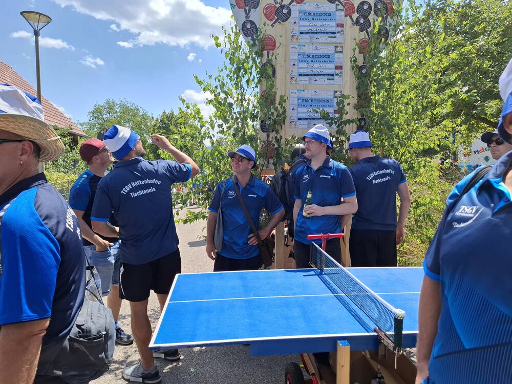 Am vergangenen Wochenende feierte unsere Gemeinde ein ganz besonderes Ereignis: 750 Jahre Hattenhofen! Selbstverständlich war auch die Tischtennisabteilung des TSGV mit großer Begeisterung beim Festumzug vertreten – und das mit einer kreativen und sportlichen Idee.